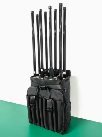 HF102C-B Portable light Backpack Drone Jammer, High gain omni antenna, 8 sets of independently operated RF working unit, can drive the drone or force the drone to land, can be transmitted shielding interference signals to the surrounding, Coverage(800-2000m) can be comprehensive and stable uninterrupted shielding of several bands in the UAV frequency band.